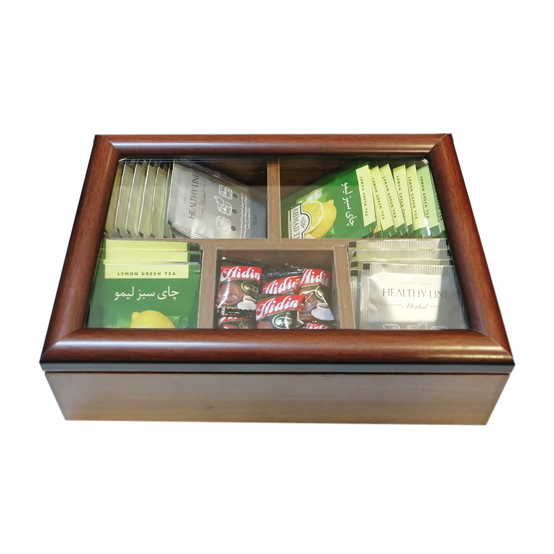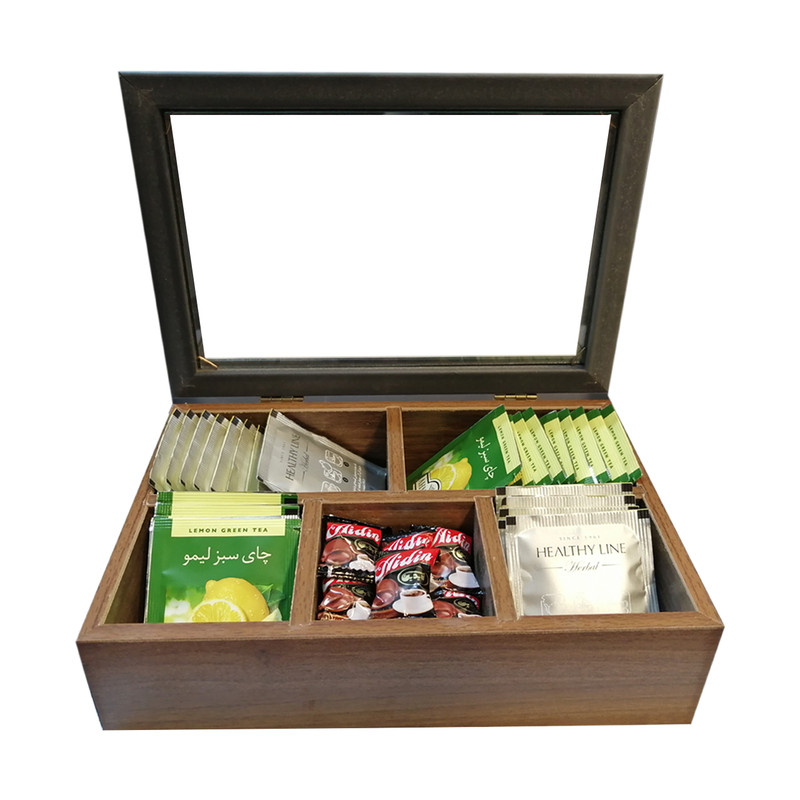 جعبه چوبی ذیل به نحوی زیبا و کاربردی طراحی و تولید شده ، که از آن می توان جهت پذیرایی با انواع دمنوش ها در مهمانی ها و دورهمی ها بهره برد .جعبه چوبی رومیزی مخصوص پذیرایی با انواع چای ، دمنوش و نسکافه طراحی و تولید شده است .